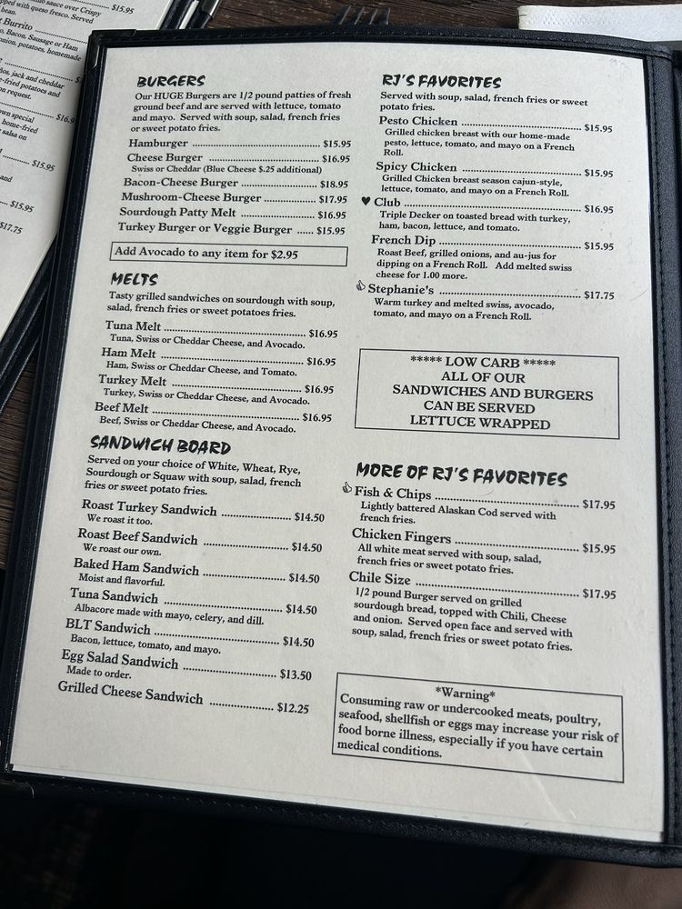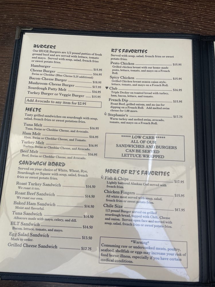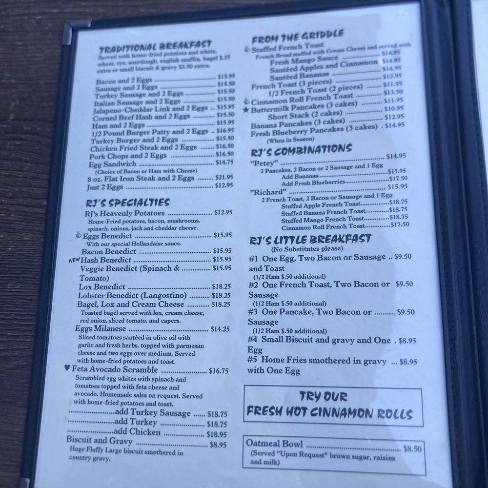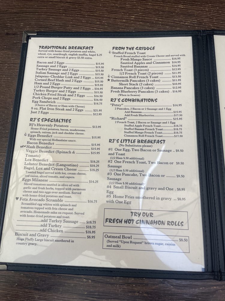 RJ's Cafe Menu (Update 2025)